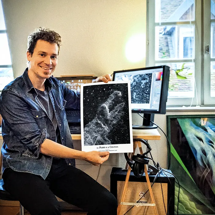Atmosphères célestes, récits d’exploration, mythes, symboles… Découvrez chaque univers visuel dans lequel s’inscrivent les tirages.