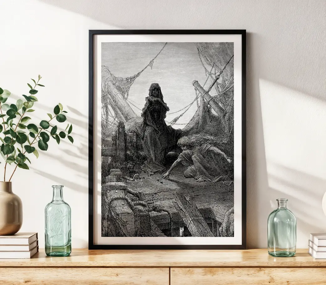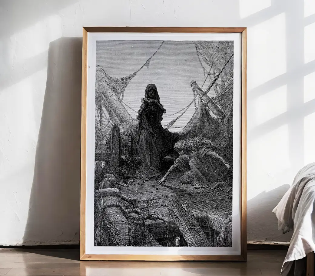 ✨ Gravure emblématique de Gustave Doré pour La Complainte du vieux marin (The Rime of the Ancient Mariner) de Samuel Taylor Coleridge (1876).