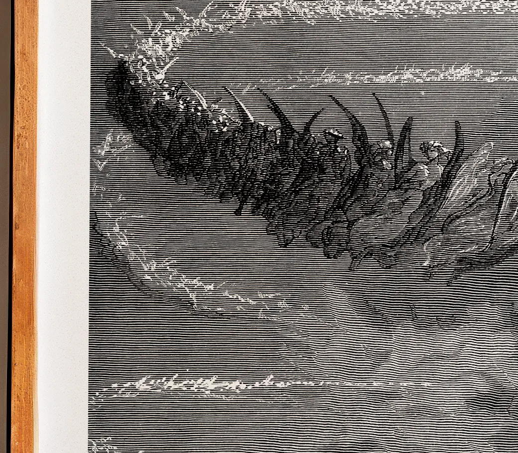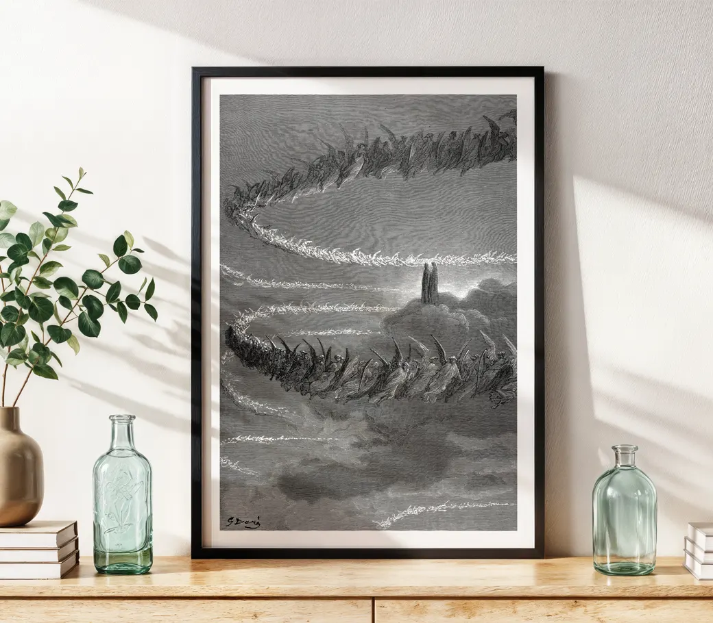 Dans la sphère de Jupiter, les âmes bienheureuses s’ordonnent en lettres de lumière, traçant des mots sacrés dans l’éther avant de se fondre en une vision éclatante. Doré y déploie un imaginaire céleste d’une pureté rare, où la lumière devient langage et mouvement spirituel.