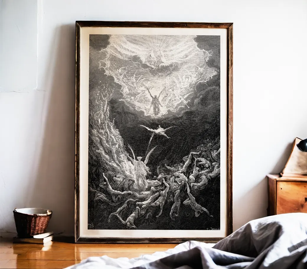 Doré y déploie toute la puissance de son art : contrastes célestes, mouvement ascensionnel et symbolisme universel.