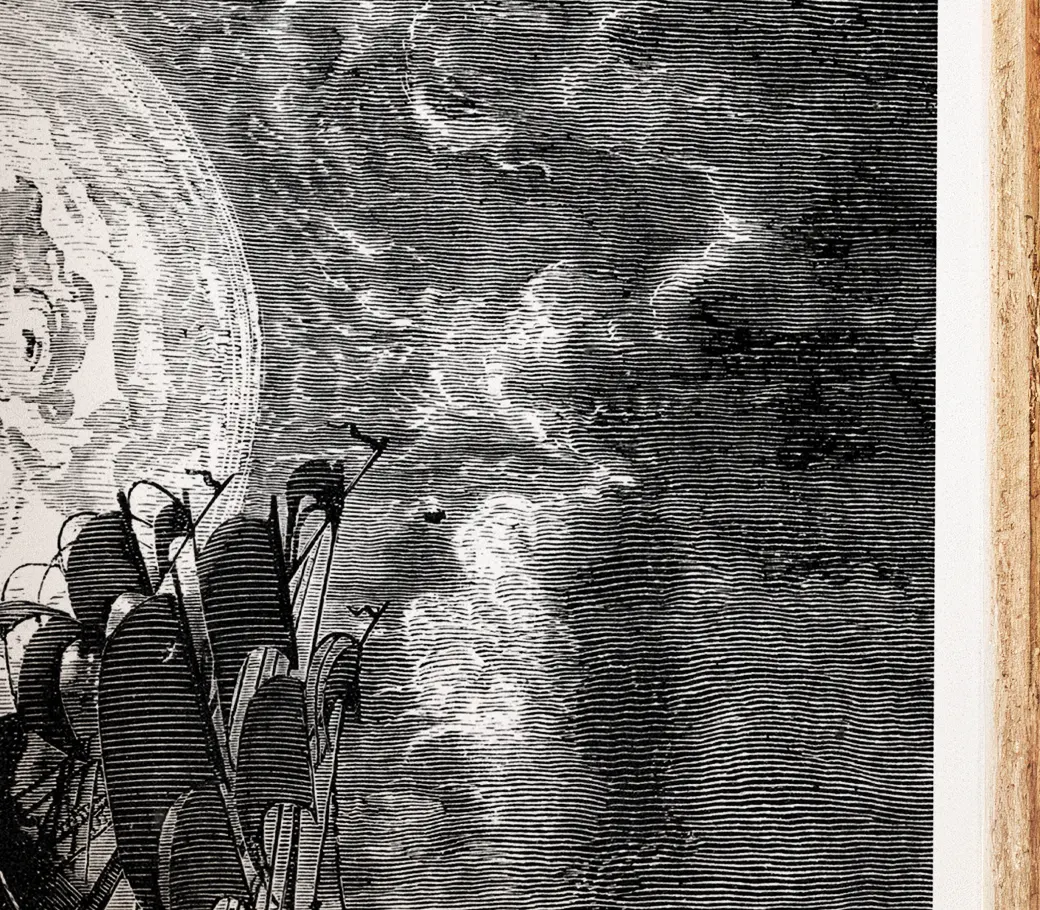 🌙 Une gravure pleine de charme et d’onirisme, parfaite pour une décoration artistique, vintage ou symbolique, à la croisée du merveilleux et de la science-fiction ancienne.