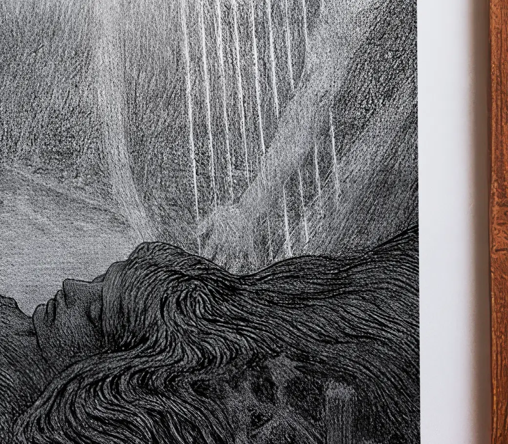 Tirage d’art sur papier épais (200 g/m²) offrant une texture noble et des couleurs profondes.