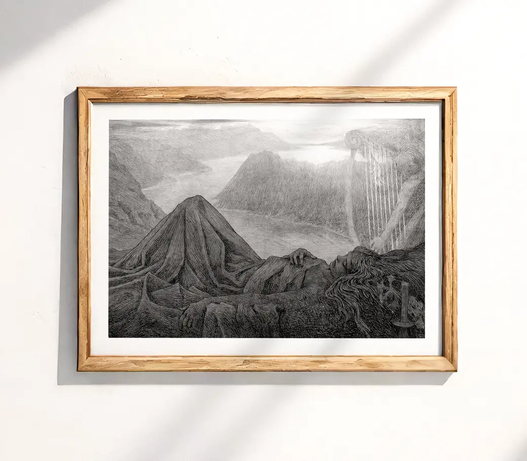 ✨ Illustration rare de Tyra Kleen (1874-1951), artiste suédoise symboliste et proche du mouvement Art Nouveau. L’œuvre « En dröm om berg » (Un rêve de montagne) évoque un univers onirique et spirituel, mêlant lignes fluides et atmosphère mystique, caractéristiques de son style. Une affiche élégante et singulière pour une décoration raffinée.